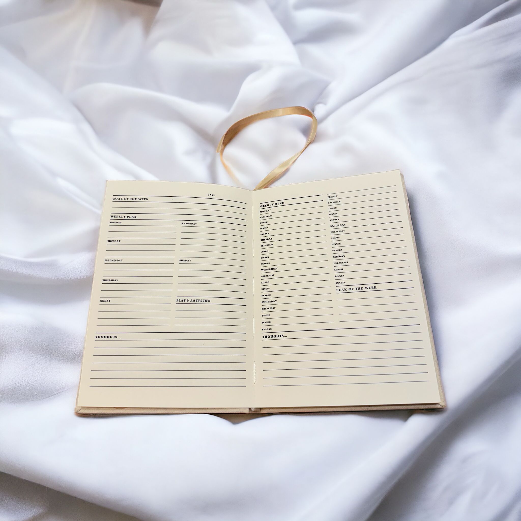 There are 52 weeks’ worth of journalling pages which include prompts, think Goal of the Week, Peak of the Week, Weekly Menu and much more. The diary also contains the following: